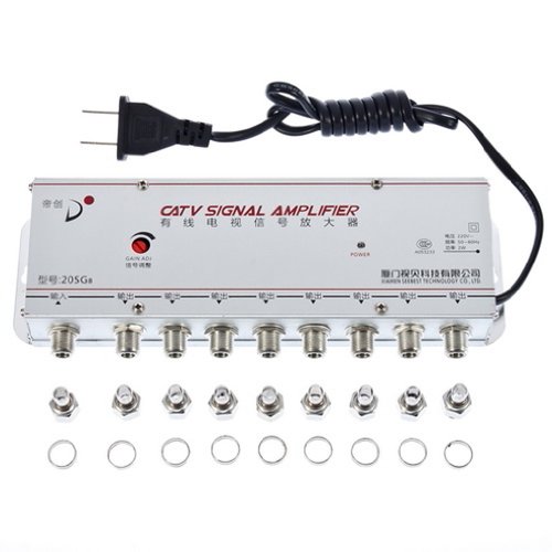 Whether you receive your TV, FM signals over-the-air or through cable, this 8 in 1 20dB signal amplifier with superior specifications will aid you if your signal is weak due to splitting or long in-house cable runs.